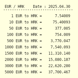 Croatian Kuna Hrk To Euro Eur Currency Exchange Today Foreign Currency Exchange Rates And Currency Converter Calculator