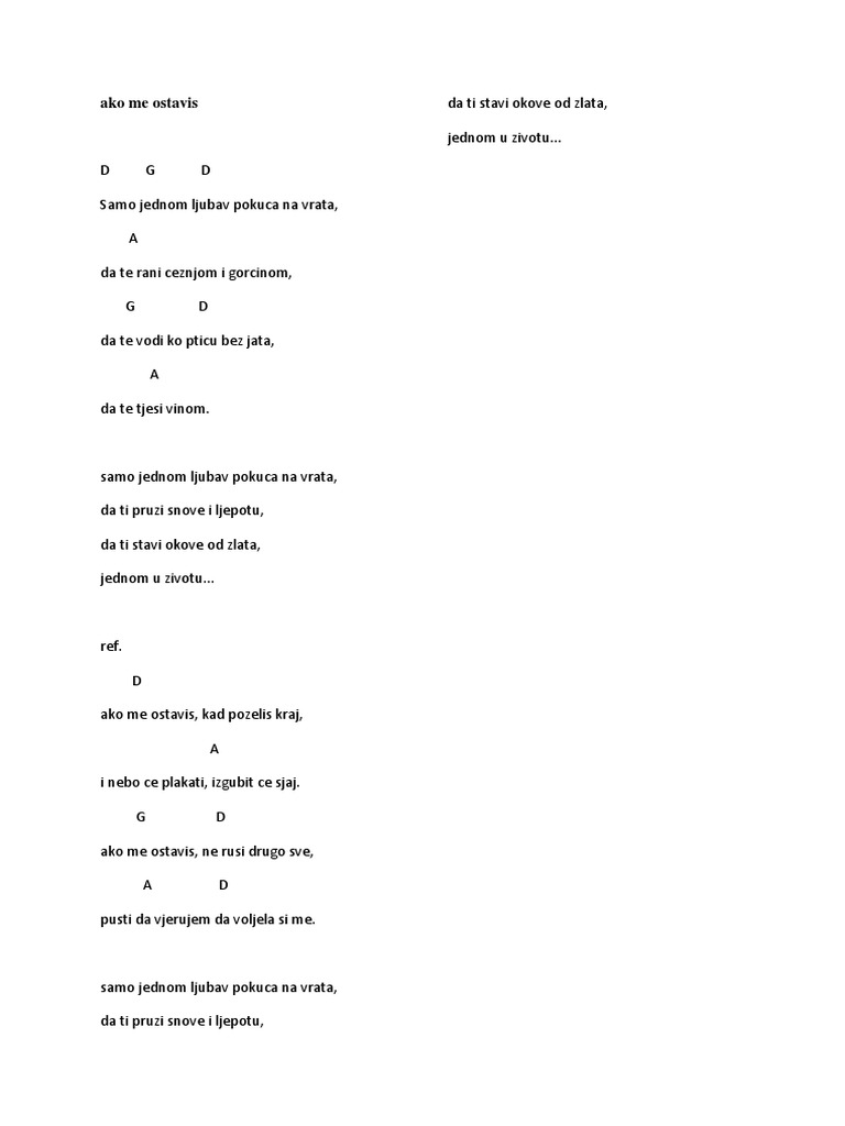 Ako Me Ostaviš Tekst
