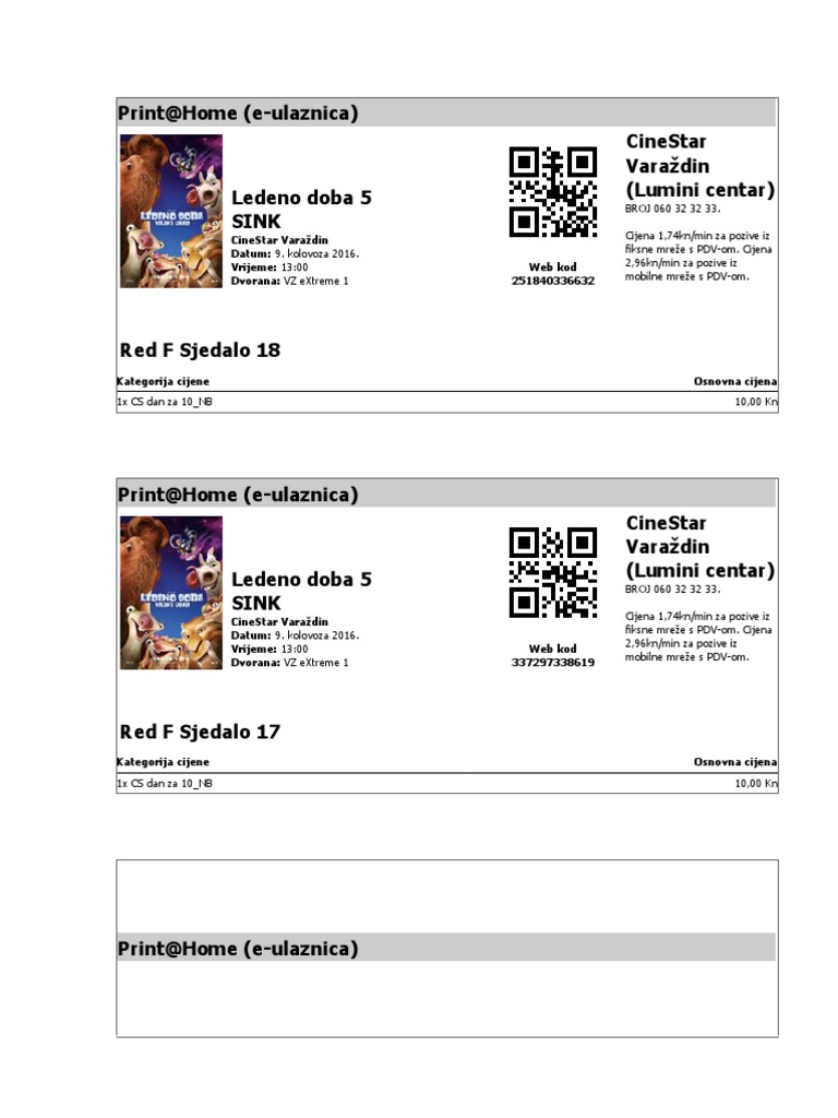 Print Home E Ulaznica Cinestar Varazdin Lumini Centar