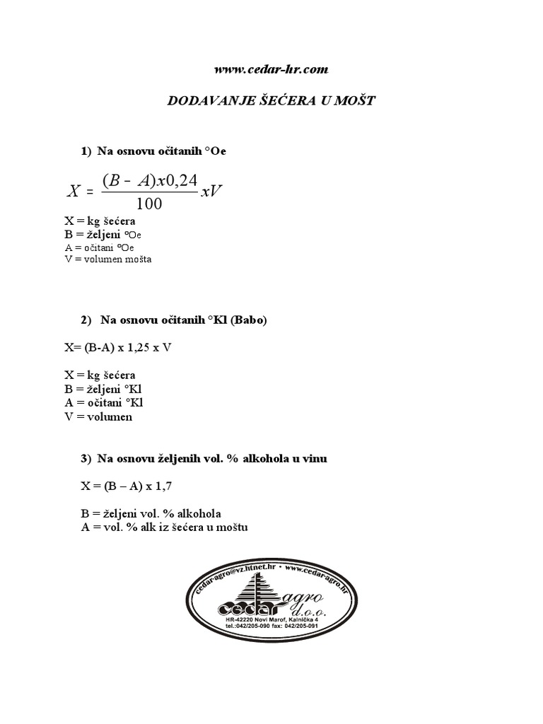 Dodavanje Secera U Most Za Vino