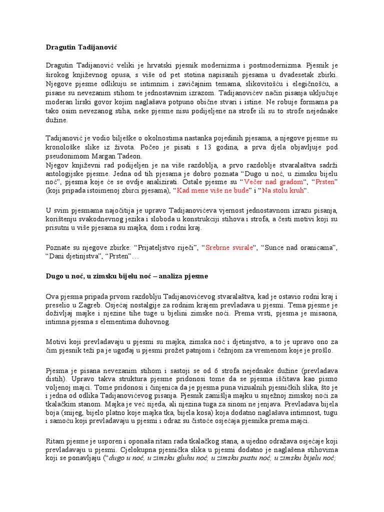 Dugo U Noc U Zimsku Gluhu Noc Dragutin Tadijanovic