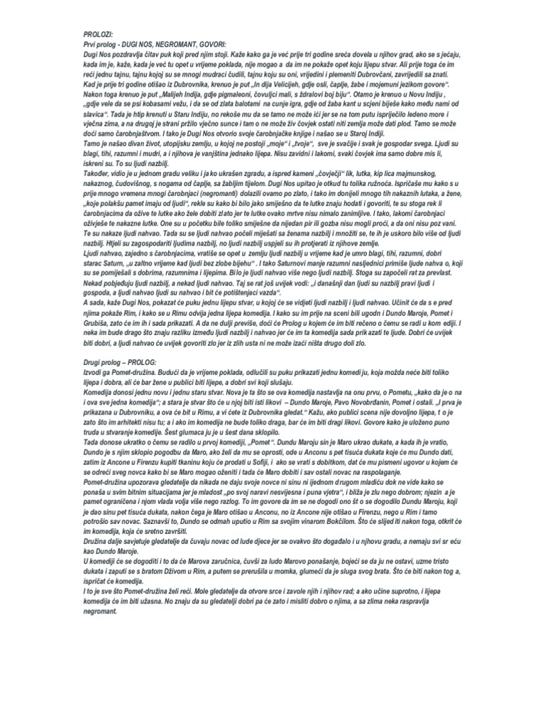 Marin Drzic Dundo Maroje Prolog Dom Marina Drzica