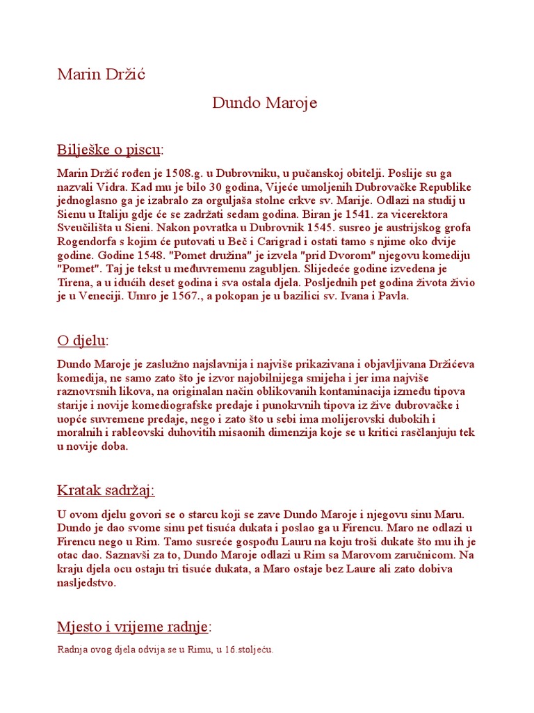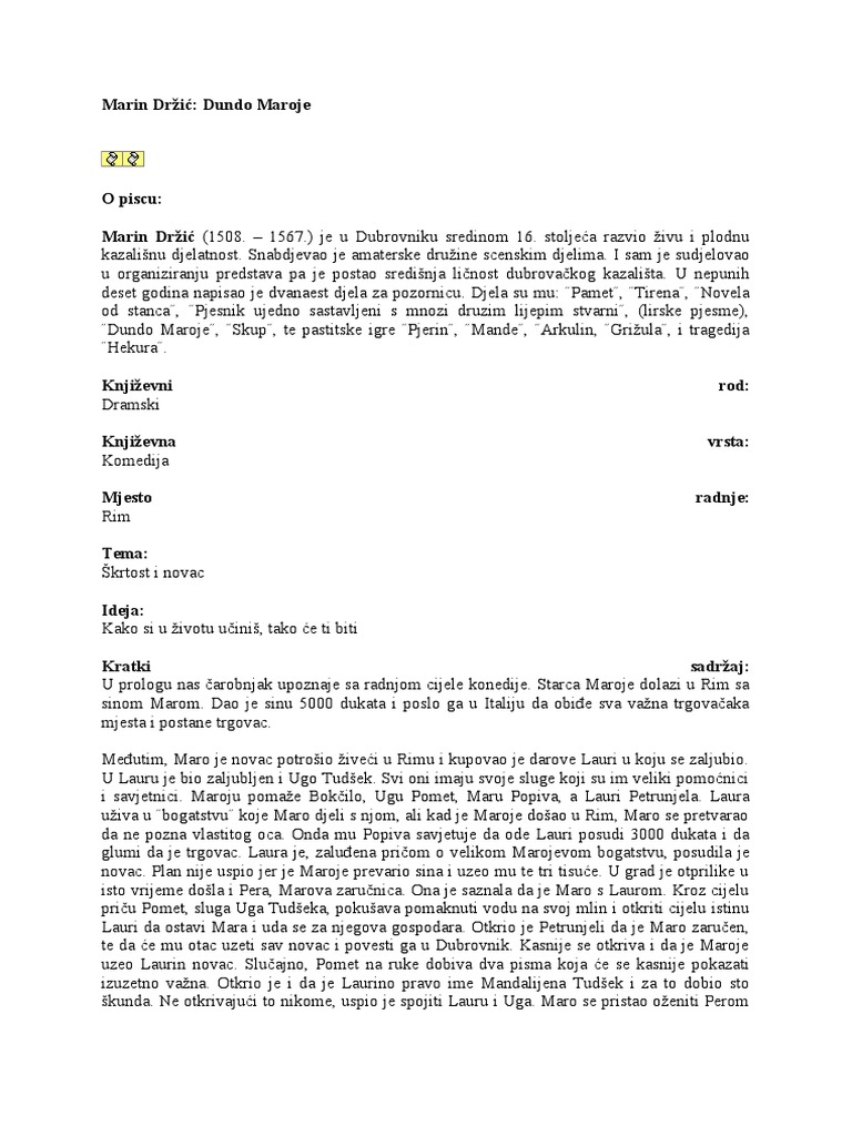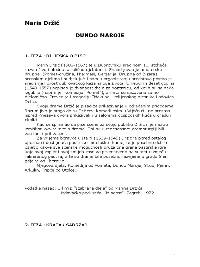 Drzic Dundo Maroje Dundo Maroje Drzic Docsity