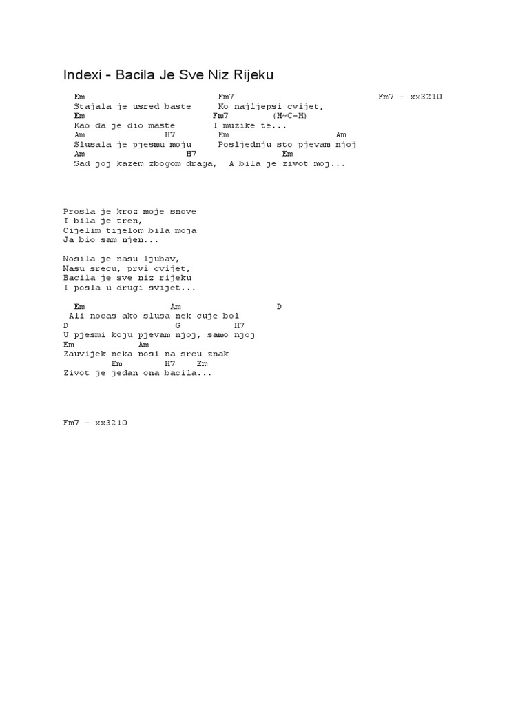 Bacila Je Sve Niz Rijeku Indexi Akordi