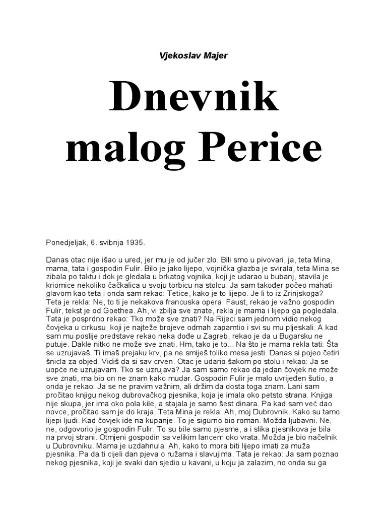 Vjekoslav Majer Dnevnik Malog Perice
