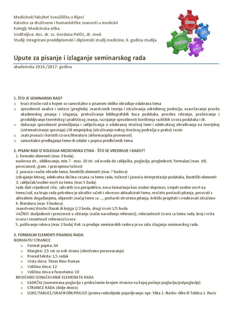 Upute Za Pisanje I Izlaganje Seminarskog Rada Med Etika 2016