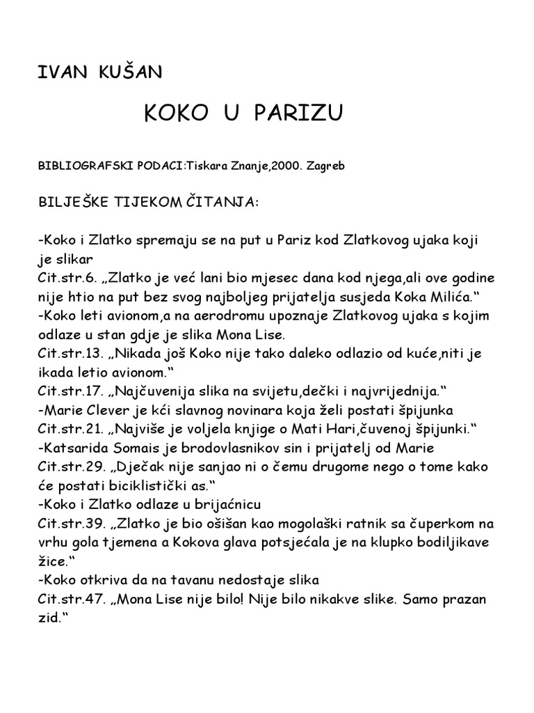 Koko U Parizu Ivan Kusan Lektire Sjedi 5