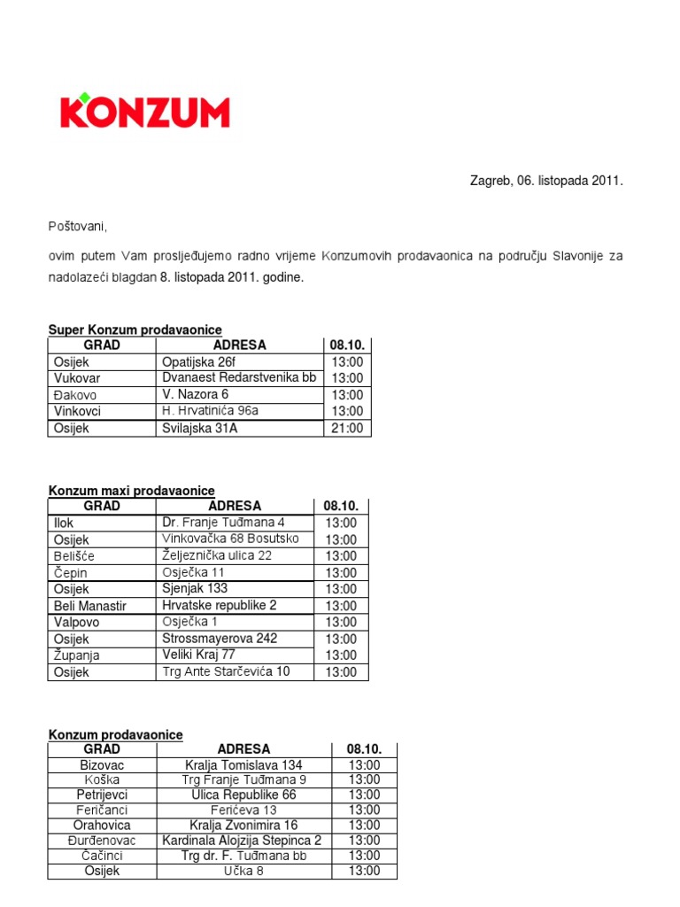 Konzum Radno Vrijeme Osijek