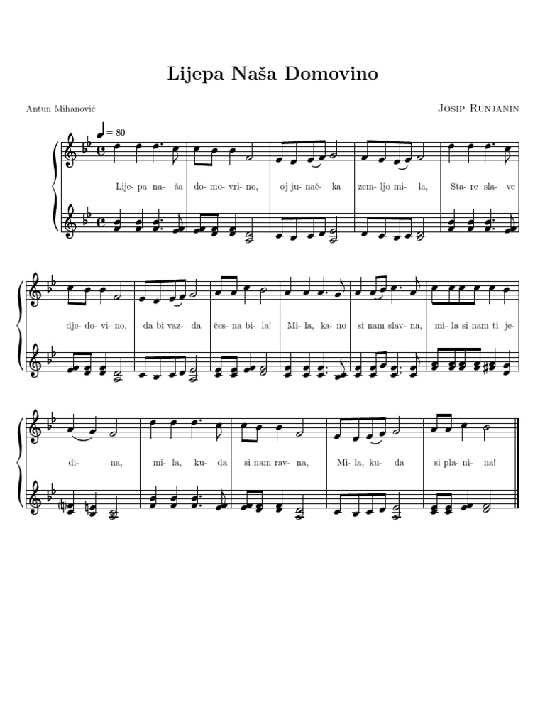 Lijepa Naša Domovino Note Za Klavir