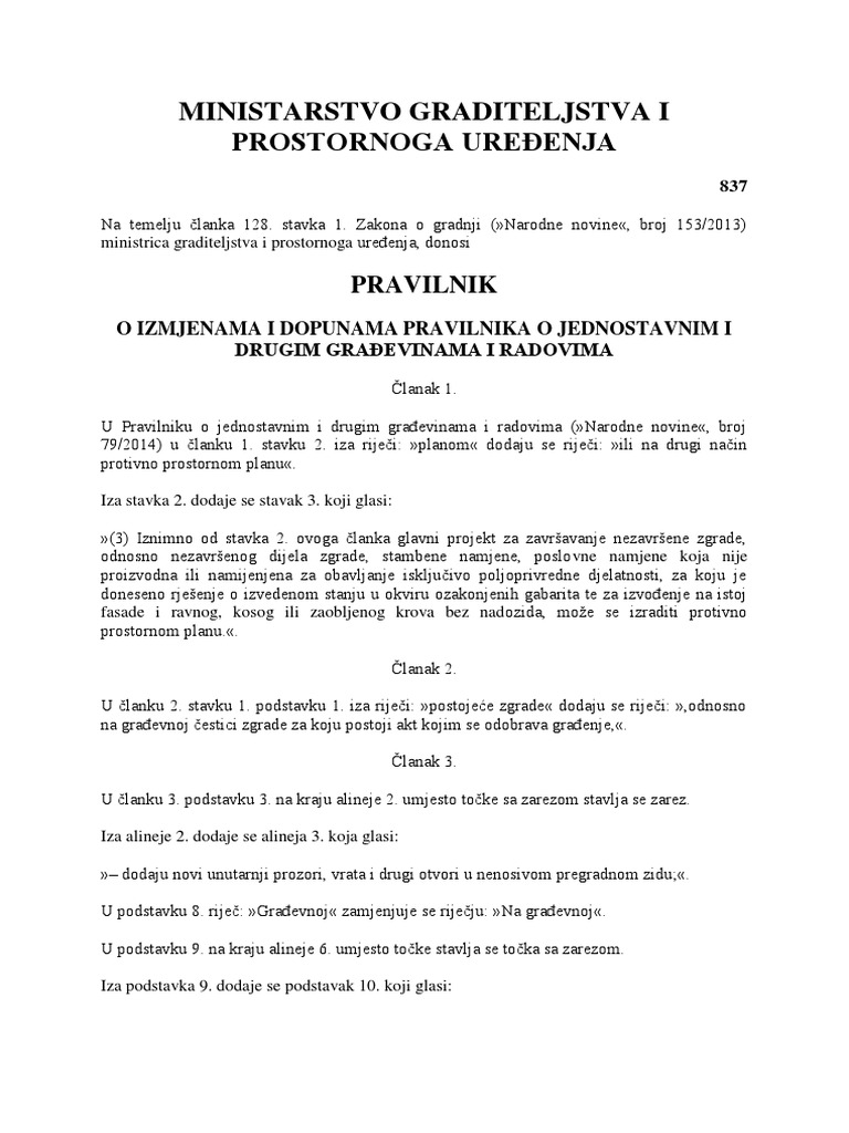 Ministarstvo Graditeljstva I Prostornoga Uređenja Pravilnik