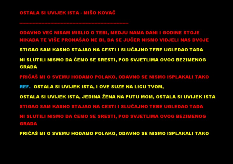 Ostala Si Uvijek Ista Lyrics Pdf