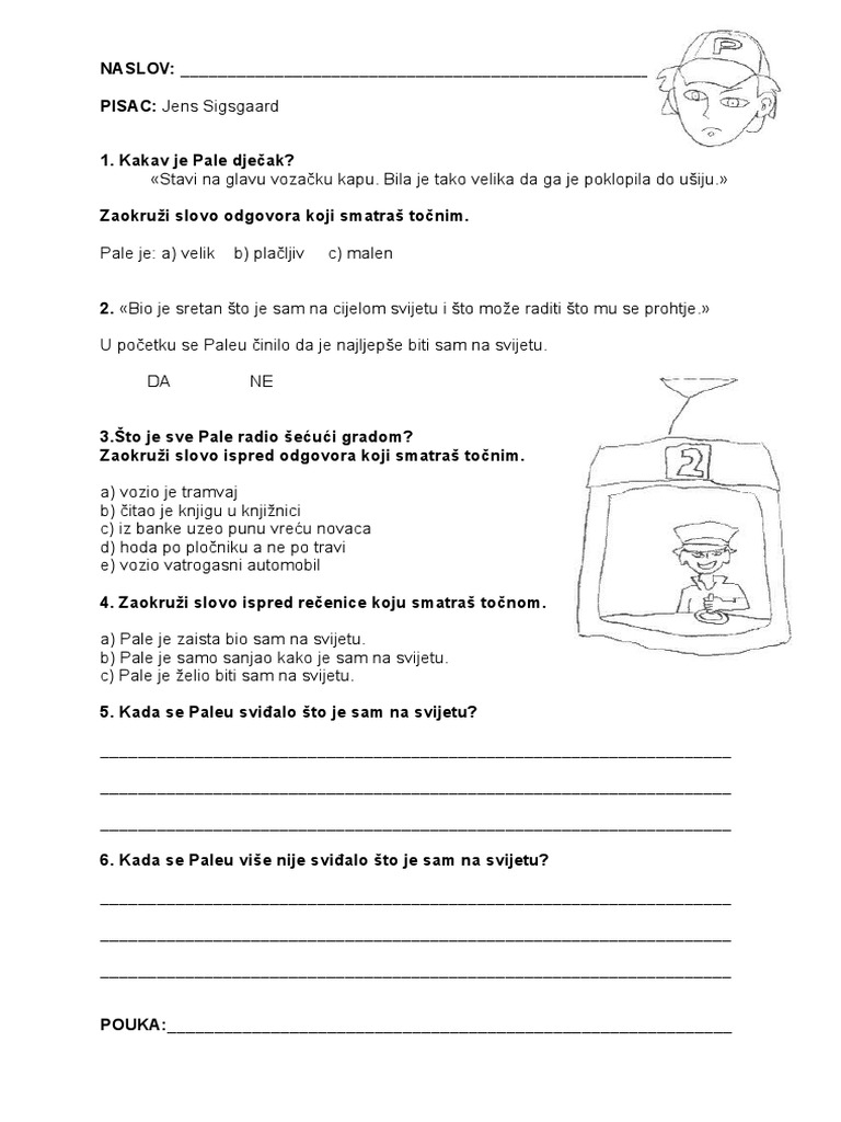 Lektira Pale Sam Na Svijetu Listic Za Provjeru 1 R Ana