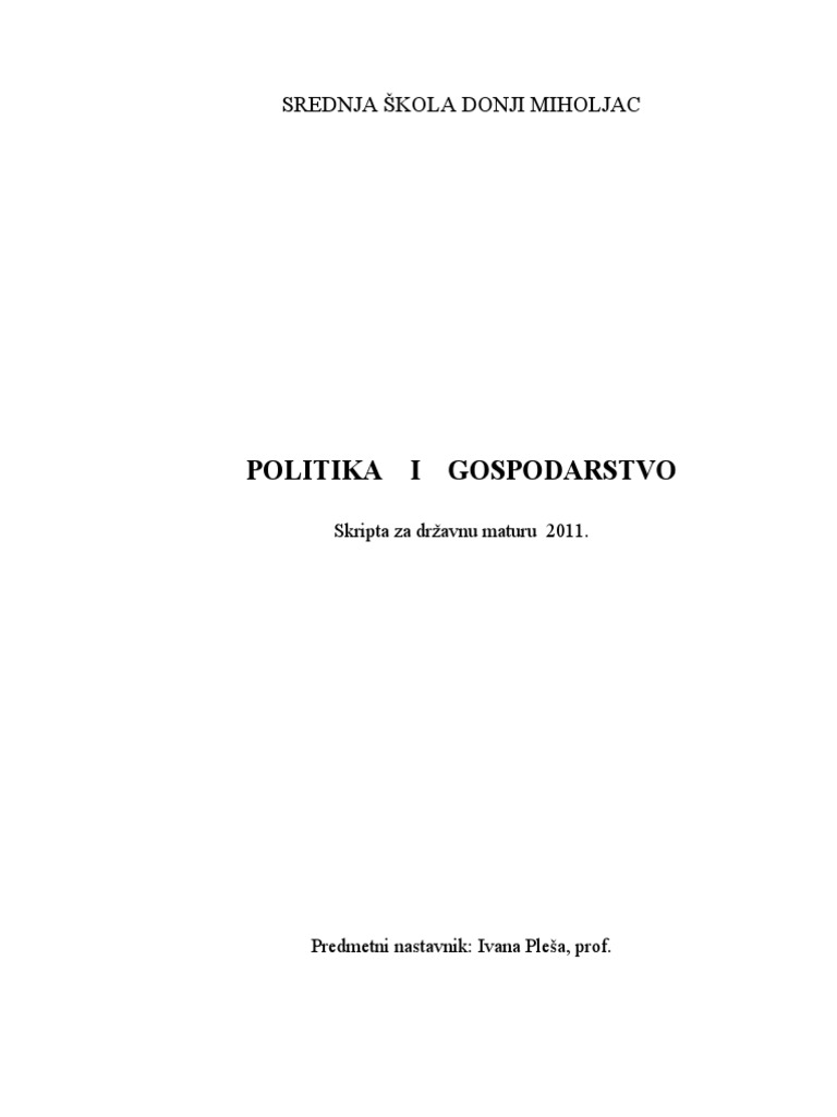 Skripta Za Drzavnu Maturu Politika I Gospodarstvo