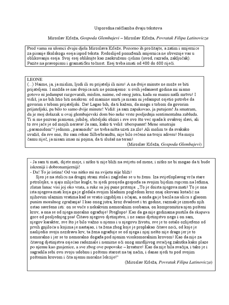 Povratak filipa latinovicza primjer eseja baraka pet be primjer eseja s ispravkom gospoda glembajevi primjer eseja s državne mature.