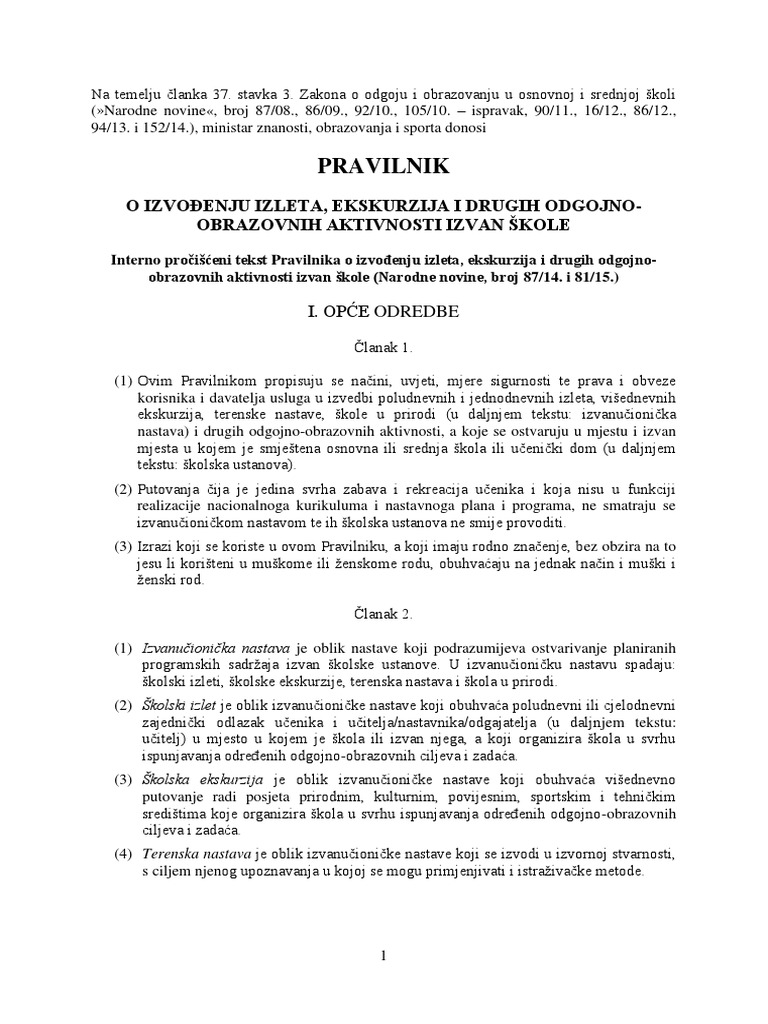 Https Www Azoo Hr Images Azoo Ravnatelji Pravilnik O Izmjenama I Dopunama Pravilnika O Izvodenju Izleta Ekskurzija I Drugih Odgojno Obrazovnih Aktivnosti Izvan Skole Nn 81 15 Pdf