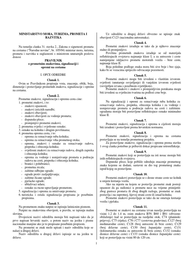 Stavka 5 zakona o sigurnosti prometa na cestama narodne novine br. Stavka 4 zakona o. Ovim se pravilnikom propisuje namjena vrsta značenje oblik boja dimenzije karakteristike i postavljanje prometnih znakova signalizacije i opreme na cestama koje se koriste za cestovni promet. Ovaj pravilnik stupa na snagu osmoga dana od dana objave u narodnim novinama.