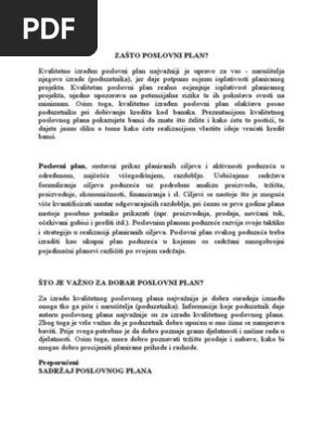 Primjer Poslovnog Plana Za Samozapošljavanje