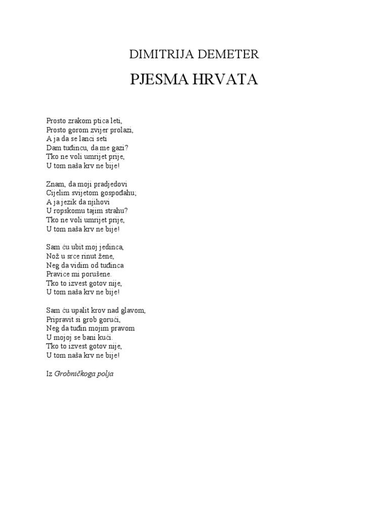 Dimitrija Demeter Pjesma Hrvata