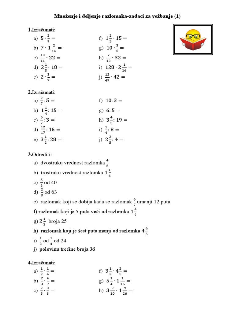 Razlomci 5 Razred Zadaci Za Vežbanje
