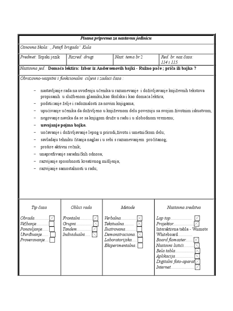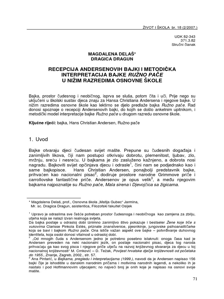 Err Strukturi Domaca Lektira H K Andersen Ruzno Pace Bajka