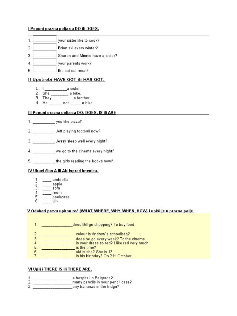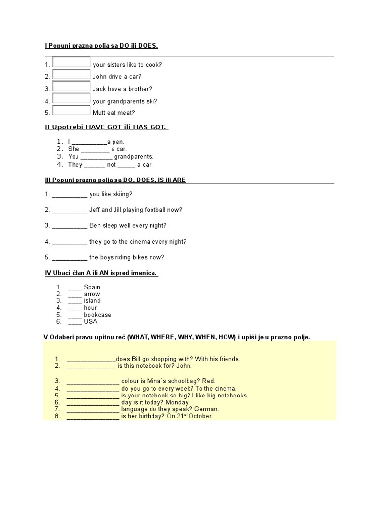 Test Iz Engleskog Jezika Iv Razred
