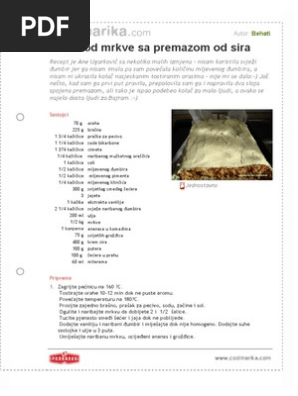 Kolac Od Mrkve Sa Premazom Od Sira Pdf Document