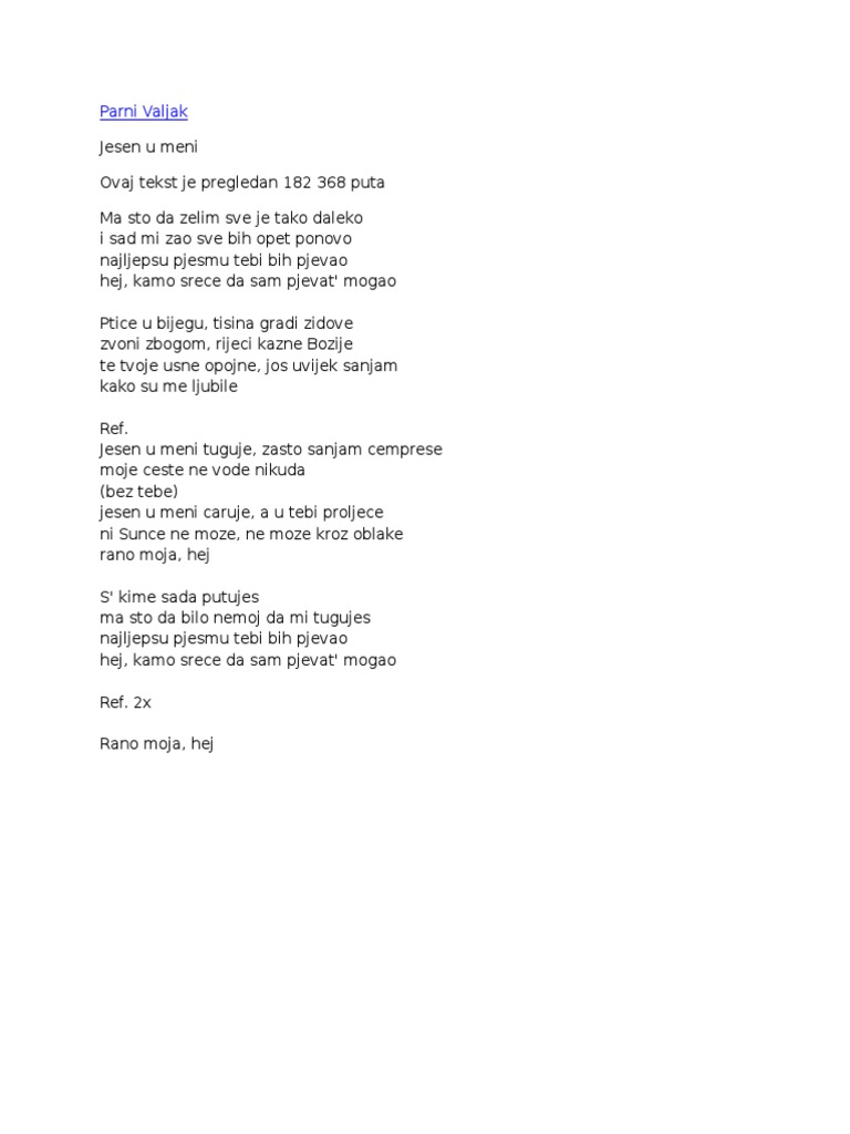 Parni Valjak Jesen U Meni Tekst Lyrics Youtube