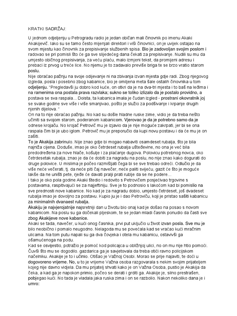 Kabanica Gogolj Kratki Sadrzaj