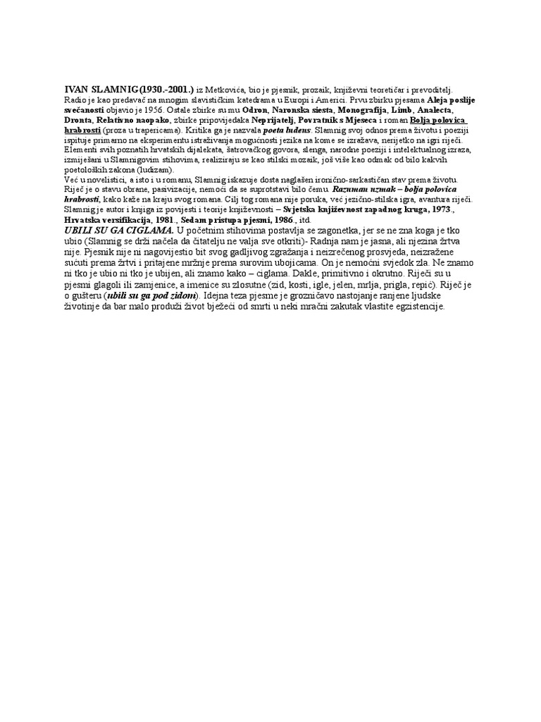 Hrvatski Jezik 4 Razred Srednjih Skola Ivan Slamnig Ubili Su Ga Ciglama Youtube