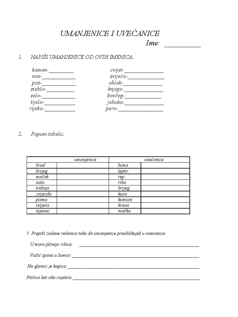 Umanjenice I Uvecanice 3 Razred Primjeri Auto Izbor