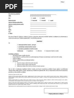 Zahtjev Za Izdavanje Kartice Vozaca