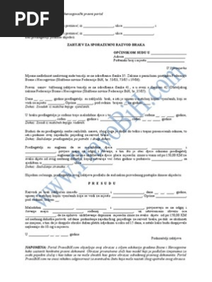 Predlog Za Sporazumni Razvod Braka Pdf Archive