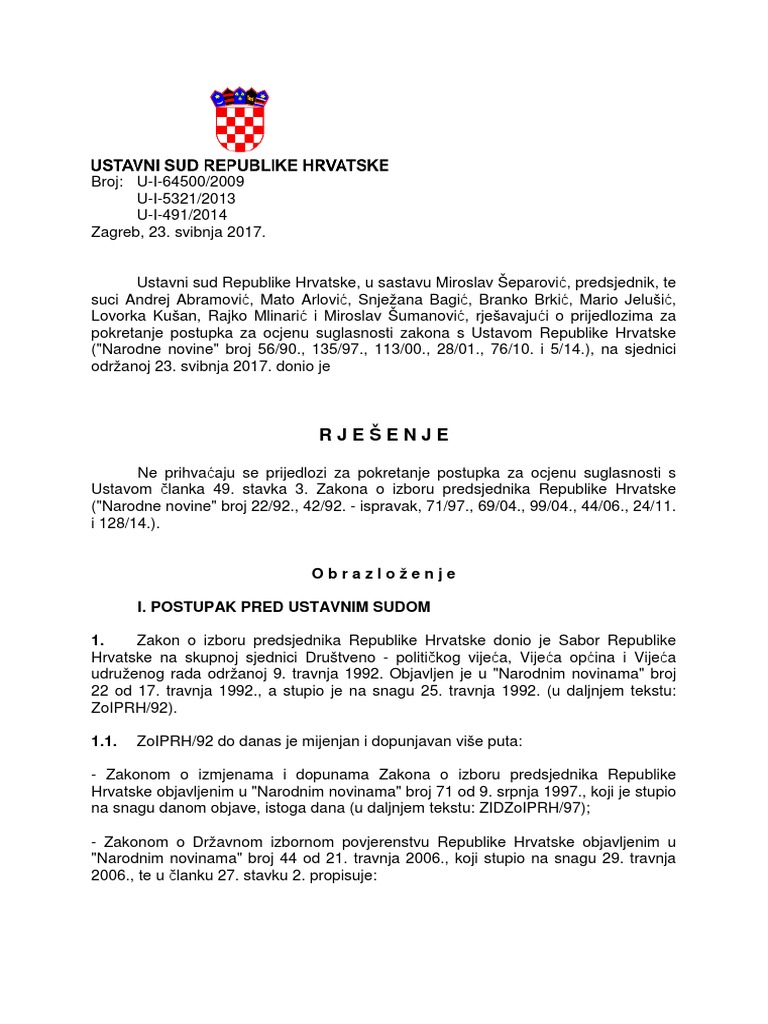 Odluka Usud A Rh O Pokretanju Postupka Za Ocjenu Suglasnosti S