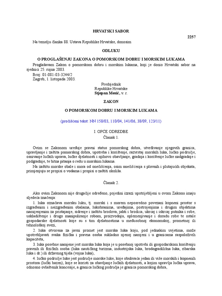 Zakon O Pomorskom Dobru I Morskim Lukama Tportal