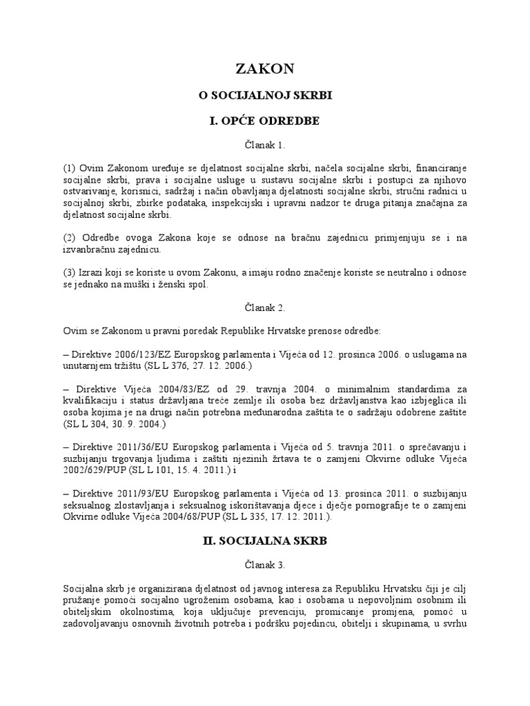 Zakon O Socijalnoj Skrbi